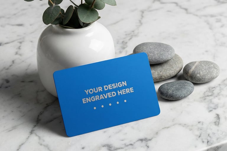 Each card is laser‑engraved onto high‑grade anodised aluminium to deliver a crisp, sleek and modern finish.